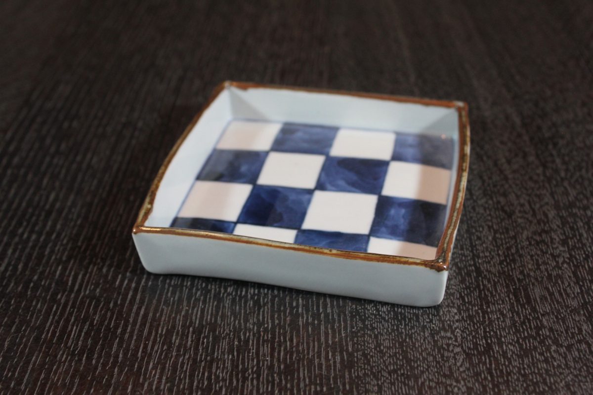 4寸四方切立皿「市松」 辺12㎝¥4.800